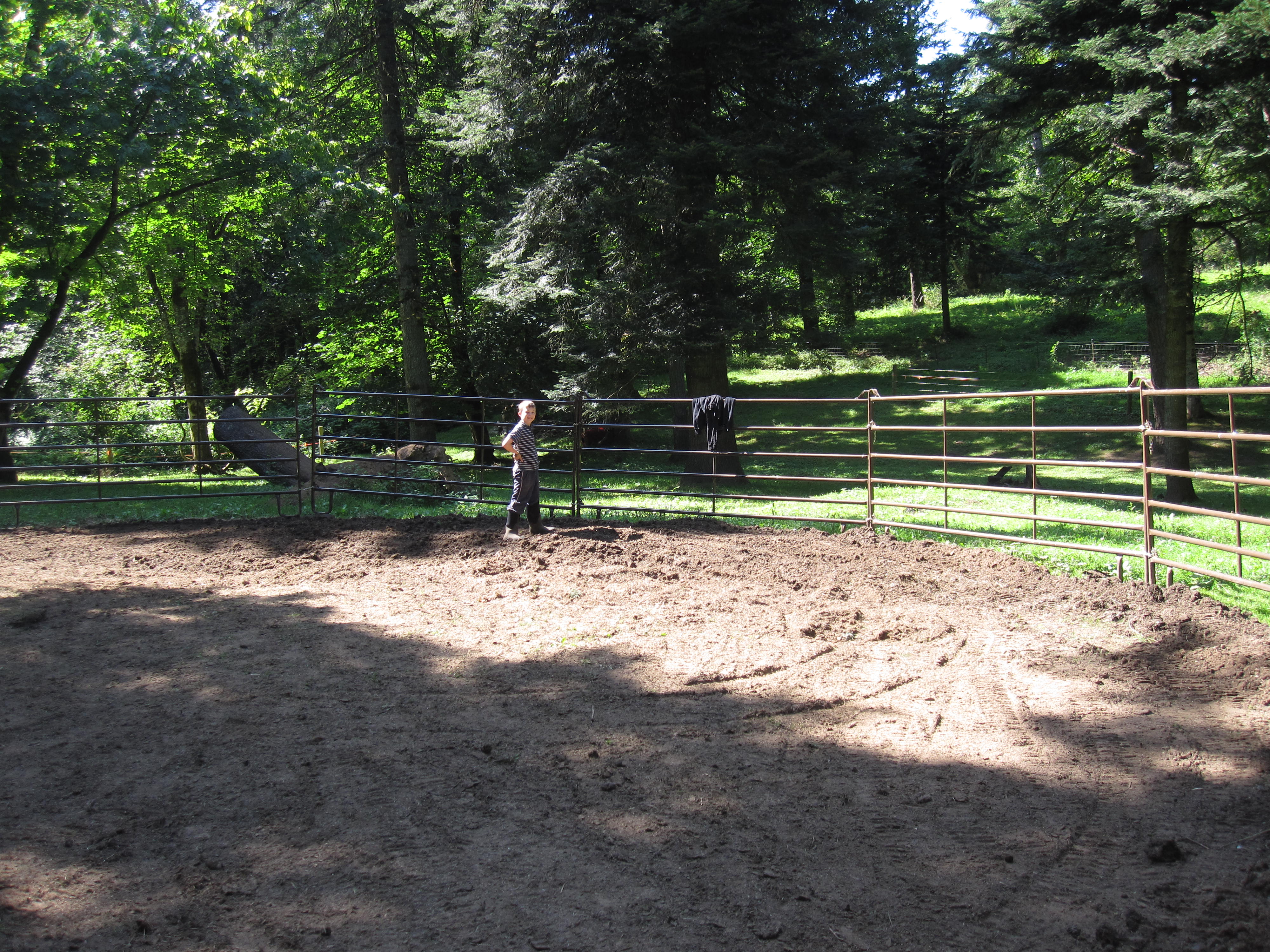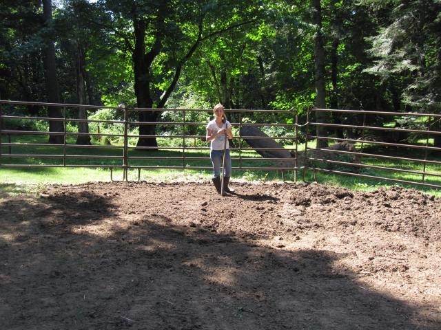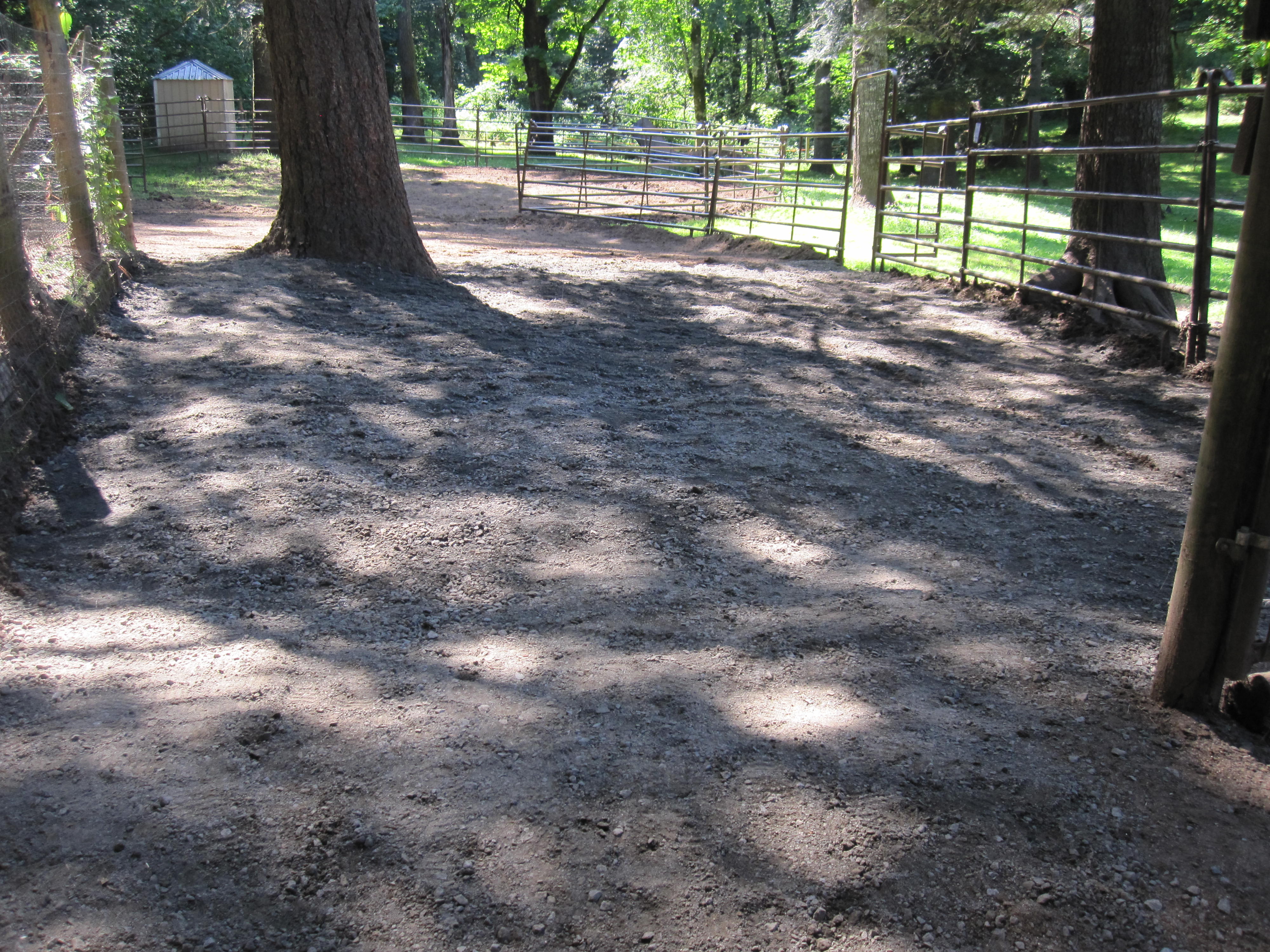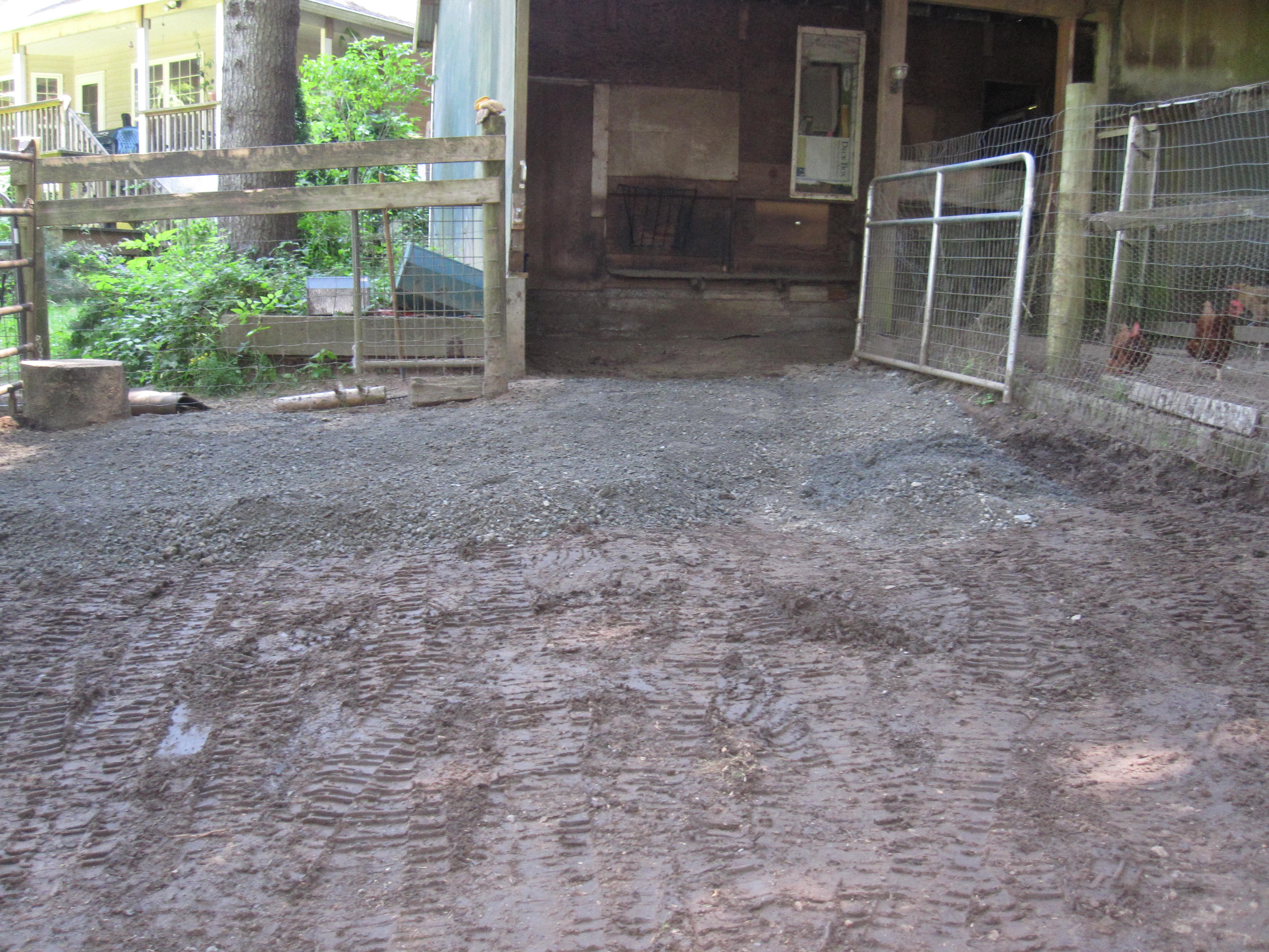 We chose this tractor because it is smaller, easier to manage and has less impact on the land. Our goal was to move the dried mud out of the horses’ pen into the round pen and then add a thick layer of gravel. We want the round pen to be more flat and the horses’ pen to be mud free this next winter.