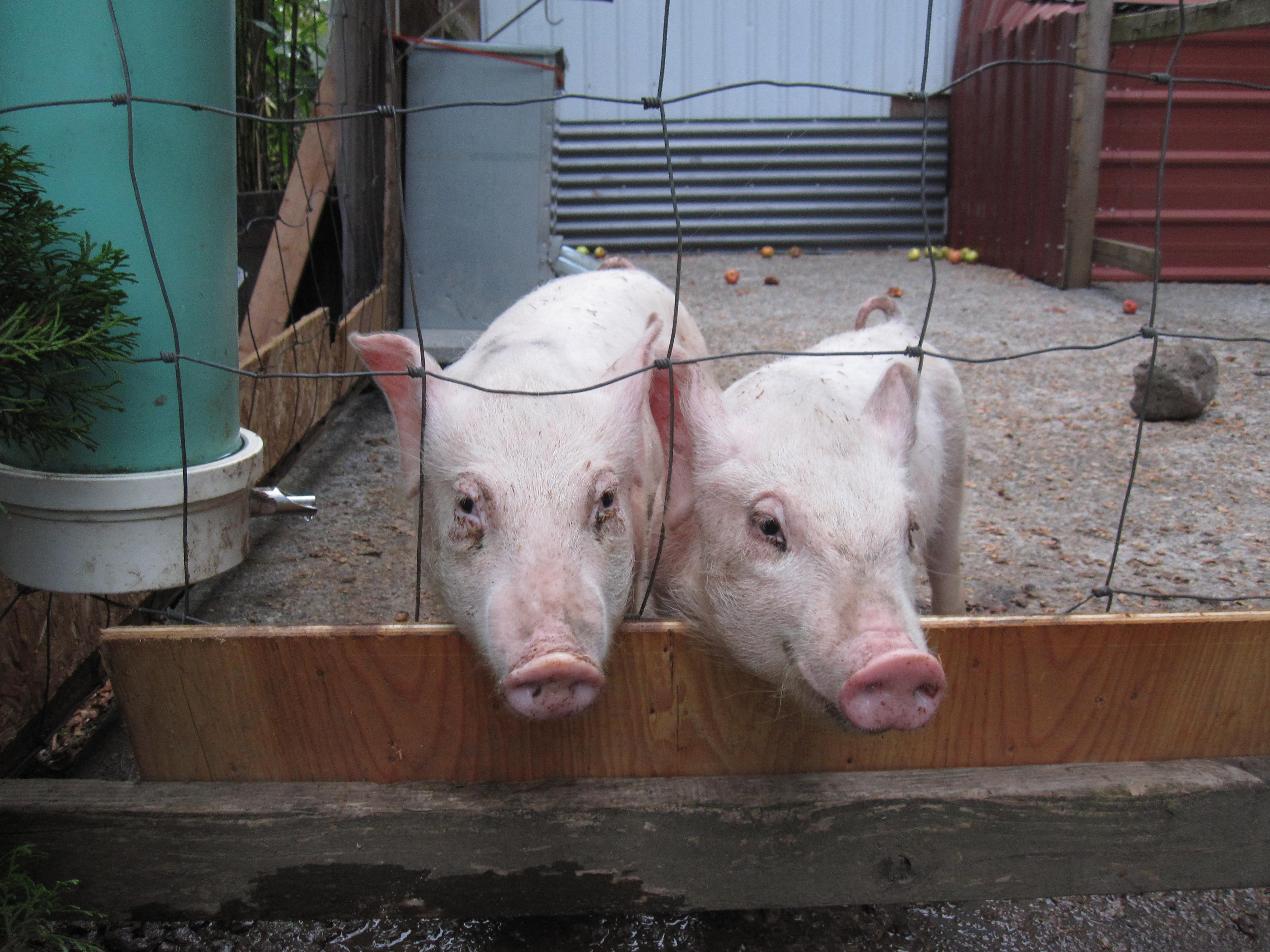 So, a few weeks ago we got a new set of piglets. Two girls! They sure are cute and funny at this age. Pigs make so many more sounds then just an oink… they bark, grumble, snort too. These two are cautiously friendly and are slow eaters. They love melon, cucumbers and apples. Their favorite game is to play keep away from each other with the apples.