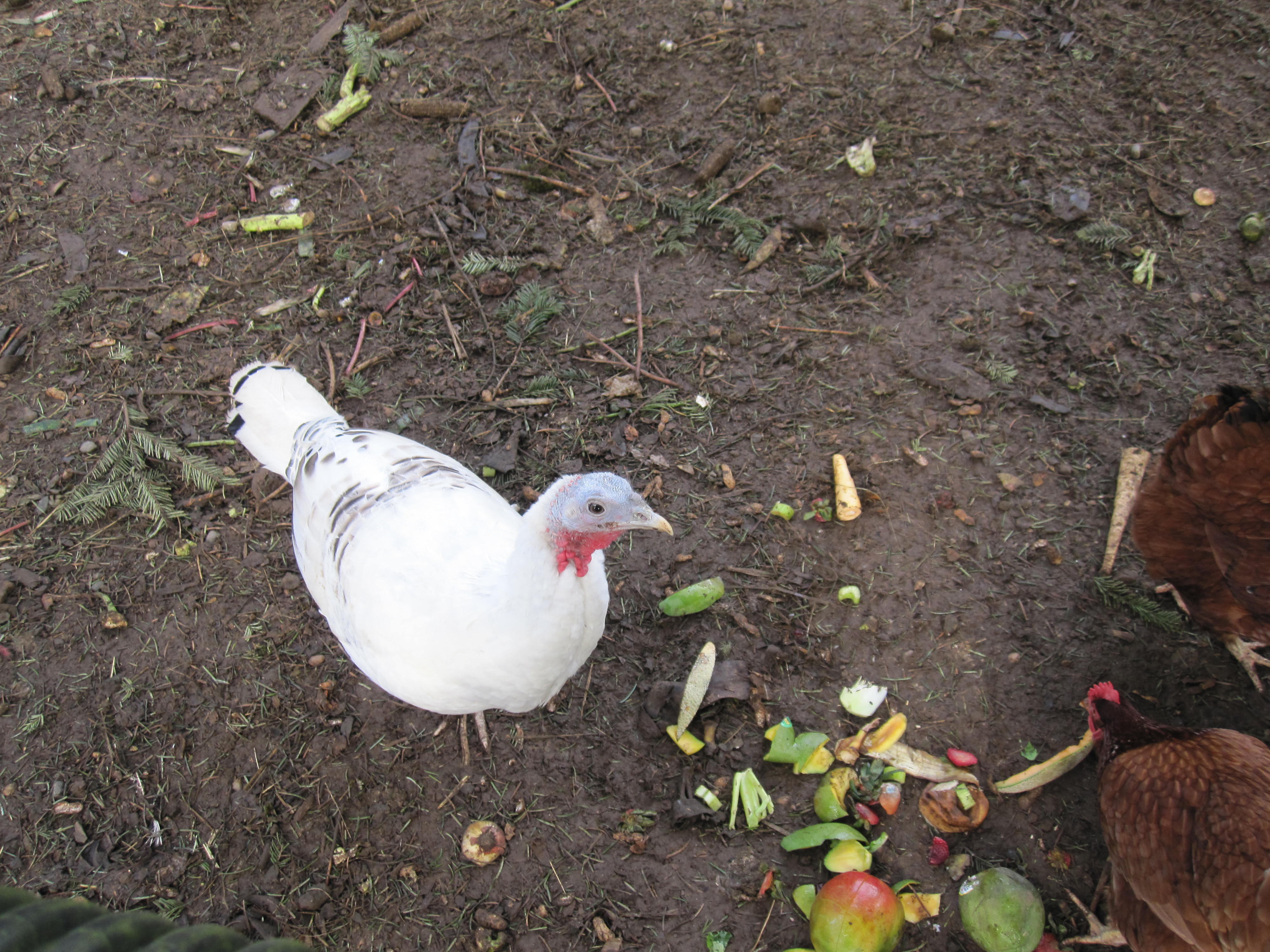 Our female turkey molted over the winter and looks so clean and white. It amazes me how poultry will completely lose all their feathers over a couple of months time and then regrow each one. Seems like a lot of work to create a feather…